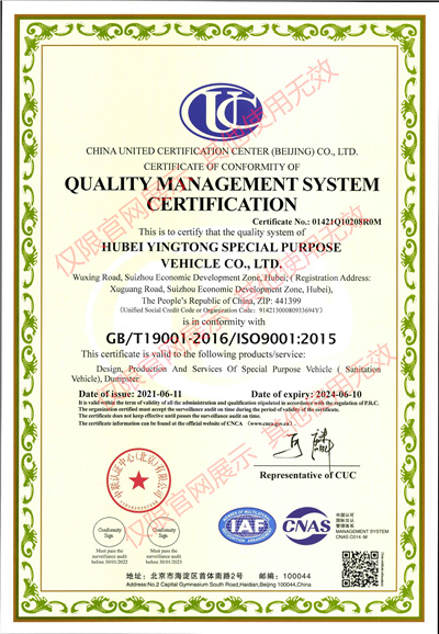 湖北盈通專用汽車有限公司承諾:凡屬本公司生產銷售的產品,底盤部分,全國服務站均可聯保,專用部分三包服務一年,售后服務四十八小時到位處理,終身負責維修并提供終身免費技術服務。