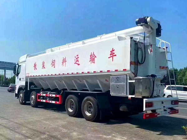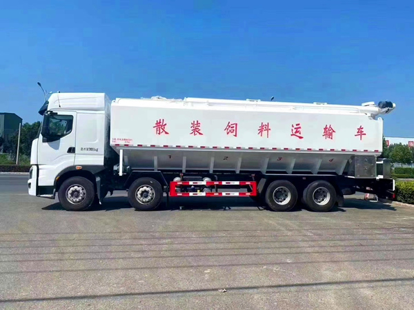 (4)料罐容積:42-45方,4個獨立倉,實載:豬料24噸,雞料26噸