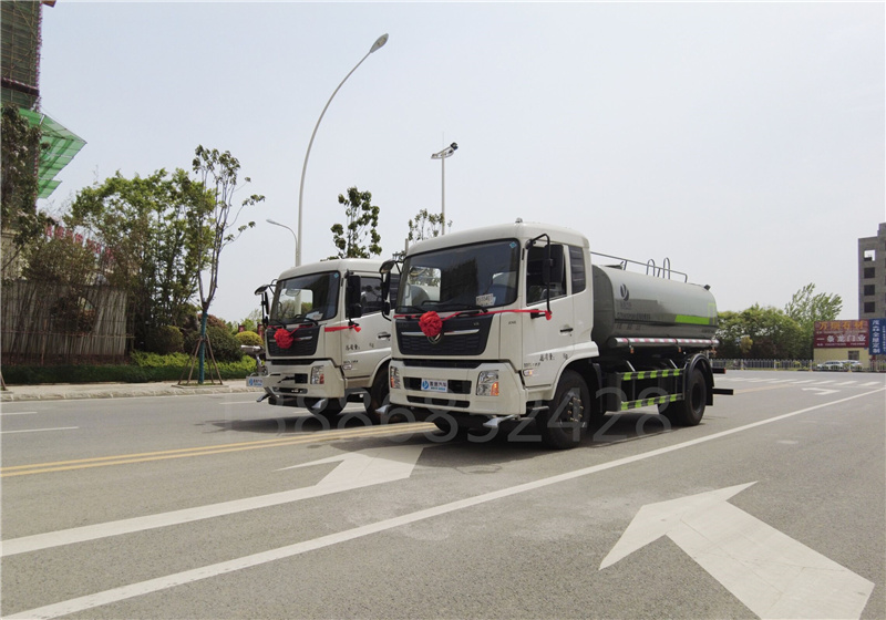 我公司產品標配前沖后灑、側噴、后置式工作平臺、平臺上有高壓軸承灑水炮(可360°旋轉,可調成柱狀最大射程 35米,也可調成霧狀最大射程15米,可調成:直沖狀、大雨、中雨、小雨、毛毛雨),配備優質大功率專用灑水泵,取力器,雜物過濾網,國標通用65型消防接口(可通過消防栓加水)、1套自流球閥系統(可自吸自排,可從河里或池塘抽水到罐體,最大吸程7米),2根引水鋼絲膠管。水泵、取力器、球閥、濾網均為國家標準產品,主管道加粗,法蘭墊、法蘭盤加厚,萬向前沖,大通徑球閥,具有性能優良,工作可靠、效率高、流量大、維修方便等特點。