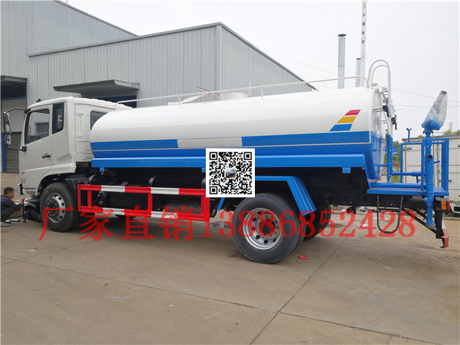 灑水車前裝有鴨嘴形噴嘴或圓錐形沖嘴,后面裝有圓柱形灑水噴嘴或蓮蓬頭噴嘴,后部有工作平臺,裝配有水炮。后還可裝8個噴嘴。
