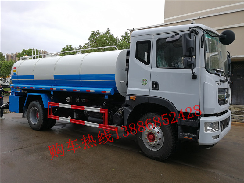 玉柴160馬力東風多利卡D9(12噸)灑水車:排半液壓可翻轉駕駛室,3950mm軸距,YC4S160-50玉柴4缸160馬力發動機,法士特6檔變速箱,900R20鋼絲胎,后橋6.8T,動力轉向,空調,原廠ABS,電動窗,中控鎖。ABS防抱死;新法規三角楔,反光背心,大燈調節,剎車自動調節,防飛濺。