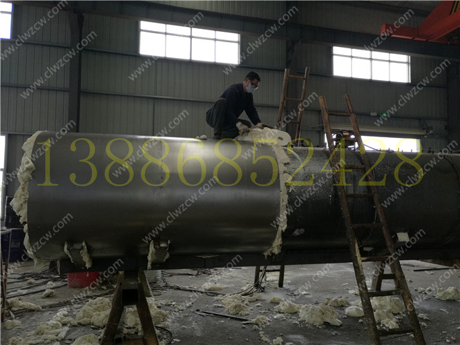 3. 保層溫的制作是在水罐外部另外焊接10mm厚的支撐骨架,然后用保溫材料將骨架內(nèi)部填充滿,最后在骨架外蒙上一層外皮。 保溫層外表鐵皮采用8mm厚高強(qiáng)度耐磨板,可選擇使用不銹鋼分鏡面8K或磨砂板