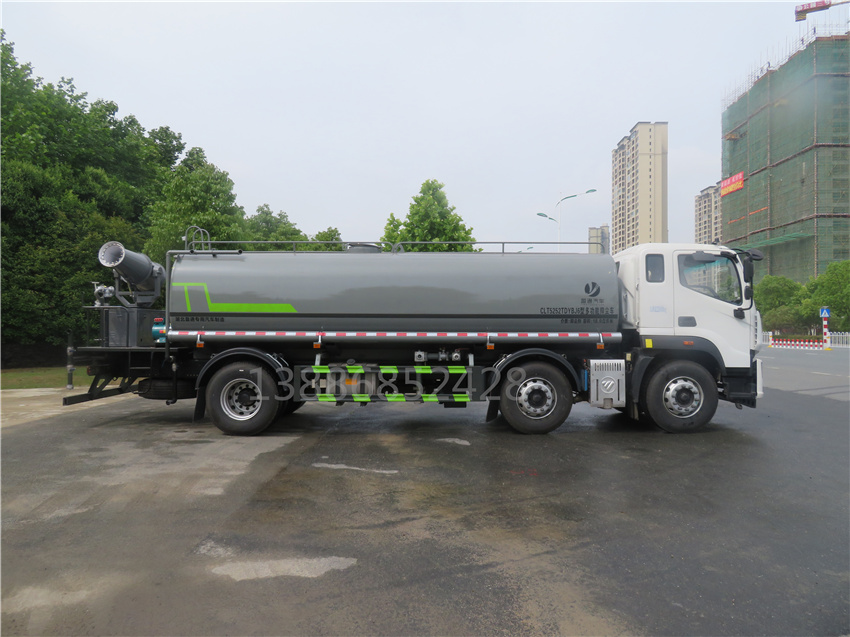 該車用途為抑塵降霾,主要裝置為罐體及噴霧裝置;罐體有效容積:18.9立方米,罐體外形尺寸(長×長軸×短軸)(mm):6700×2450×1580;側(cè)、后防護(hù)材料均為:Q235碳鋼,連接方式均為:螺栓連接,后部防護(hù)截面尺寸(mm):120×50,后部防護(hù)離地高度(mm):480;ABS系統(tǒng)型號/生產(chǎn)企業(yè)對應(yīng)關(guān)系:CM4XL-4S/4M,廣州瑞立科密汽車電子股份有限公司.采用底盤2100+4200軸距(mm)。選裝噴霧裝置樣式。 |