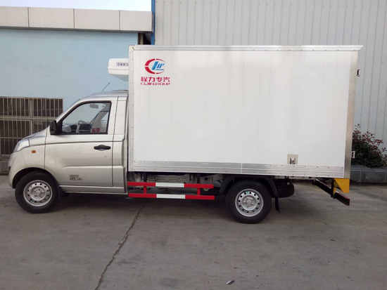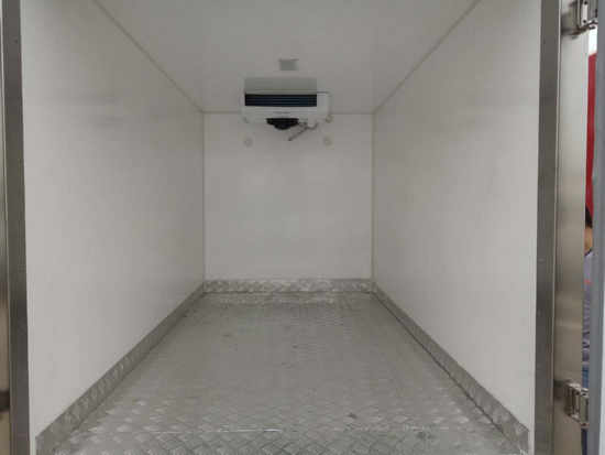 冷藏車廂體:采用國標A級聚氨酯保溫材料,厚度為8厘米,廂體內外采用玻璃鋼材質全包裹。不銹鋼鎖件。包角、包邊鋁合金型材。底盤采用高強度花紋鋁板定制。可選裝肉鉤導軌,和底部通風槽