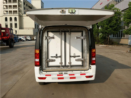 冷藏車廂體:采用國標A級聚氨酯保溫材料,厚度為8厘米,廂體內外采用玻璃鋼材質全包裹。不銹鋼鎖件。包角、包邊鋁合金型材。底盤采用高強度花紋鋁板定制。可選裝肉鉤導軌,和底部通風槽。