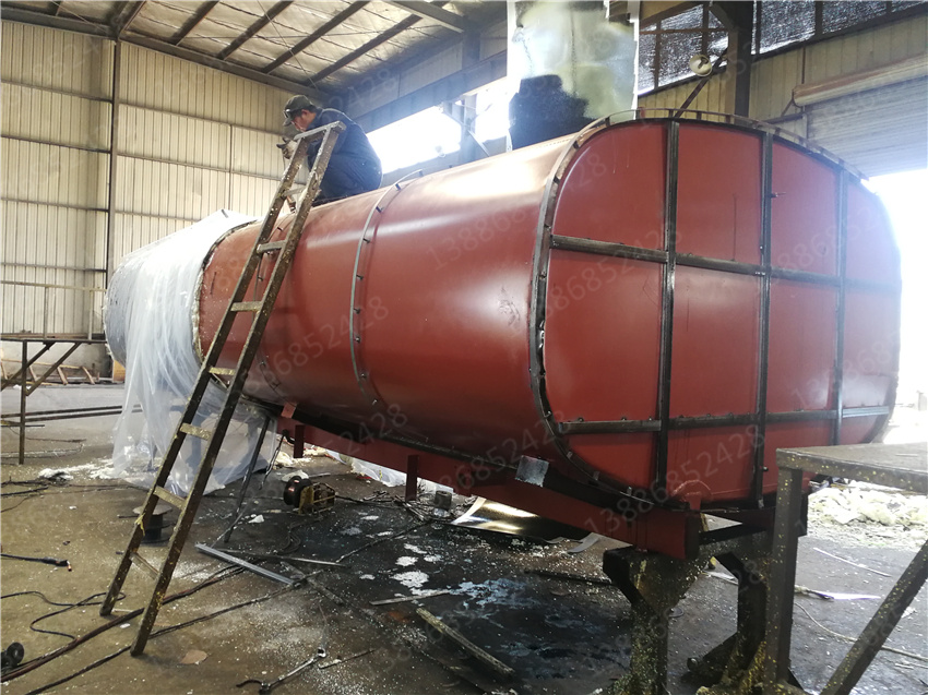 3. 保層溫的制作是在水罐外部另外焊接10mm厚的支撐骨架,然后用保溫材料將骨架內部填充滿,**在骨架外蒙上一層外皮。 保溫層外表鐵皮采用8mm厚高強度耐磨板,可選擇使用不銹鋼分鏡面8K或磨砂板