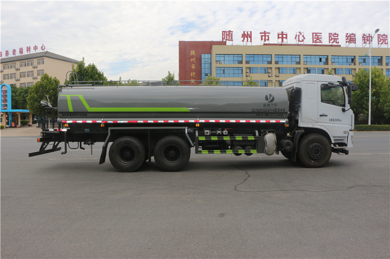 東風專底D3L灑水車_東風專底20方灑水車_湖北盈通專用汽車有限公司該車主要用于城鄉園林綠化,路面噴灑,除塵和降溫;主要裝置為水罐及噴灑裝置;隨底盤選裝駕駛室;罐體有效容積:15.17立方米;罐體外形尺寸(×長軸×短軸)(mm):6900×2370×1360;側后防護情況:側、后防護材料均為:Q235碳鋼,連接方式均為:螺栓連接,后部防護截面尺寸(mm):120×50,后部防護離地高度(mm):460;ABS型號/生成廠家:3631010-C2000/東科克諾爾商用車制動系統(十堰)有限公司。選裝附件布局。