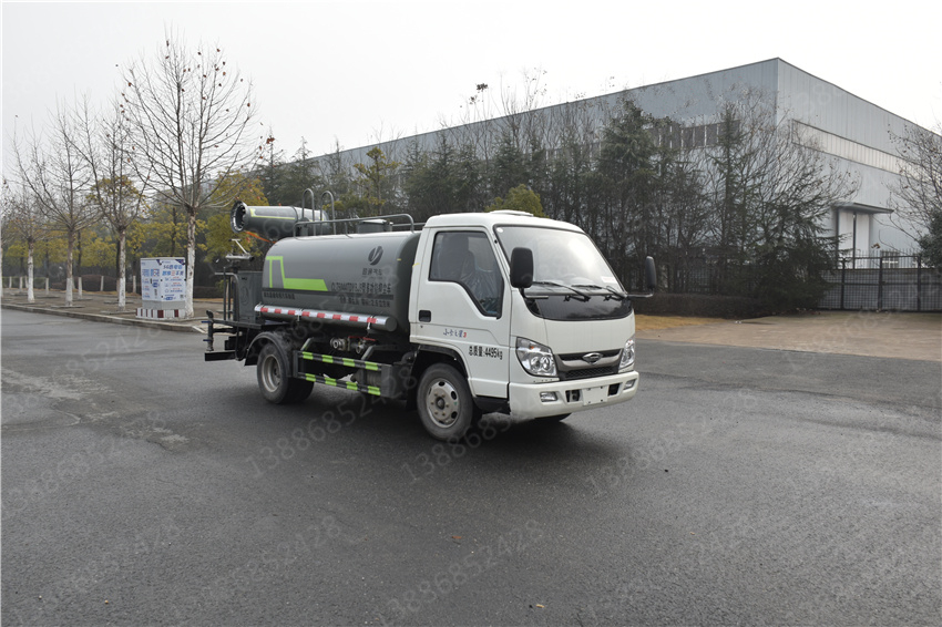 福田小卡三灑水車_福田藍牌灑水車_福田藍牌4.1方灑水車_湖北盈通專用汽車有限公司,該車用途為抑塵降霾.主要裝置為罐體及噴霧裝置;罐體有效容積:2.6立方米;罐體外形尺寸(×長軸×短軸)(mm):2600×1450×950;2600×1600×1150;ABS型號為CM4XL-4S/4M,生產廠家為廣州瑞立科密汽車電子股份有限公司;側、后防護材料均為:Q235碳鋼,連接方式均為:螺栓連接,后部防護截面尺寸(mm):120×50,后部防護離地高度(mm):360.隨底盤選裝駕駛室,選裝噴霧裝置樣式。