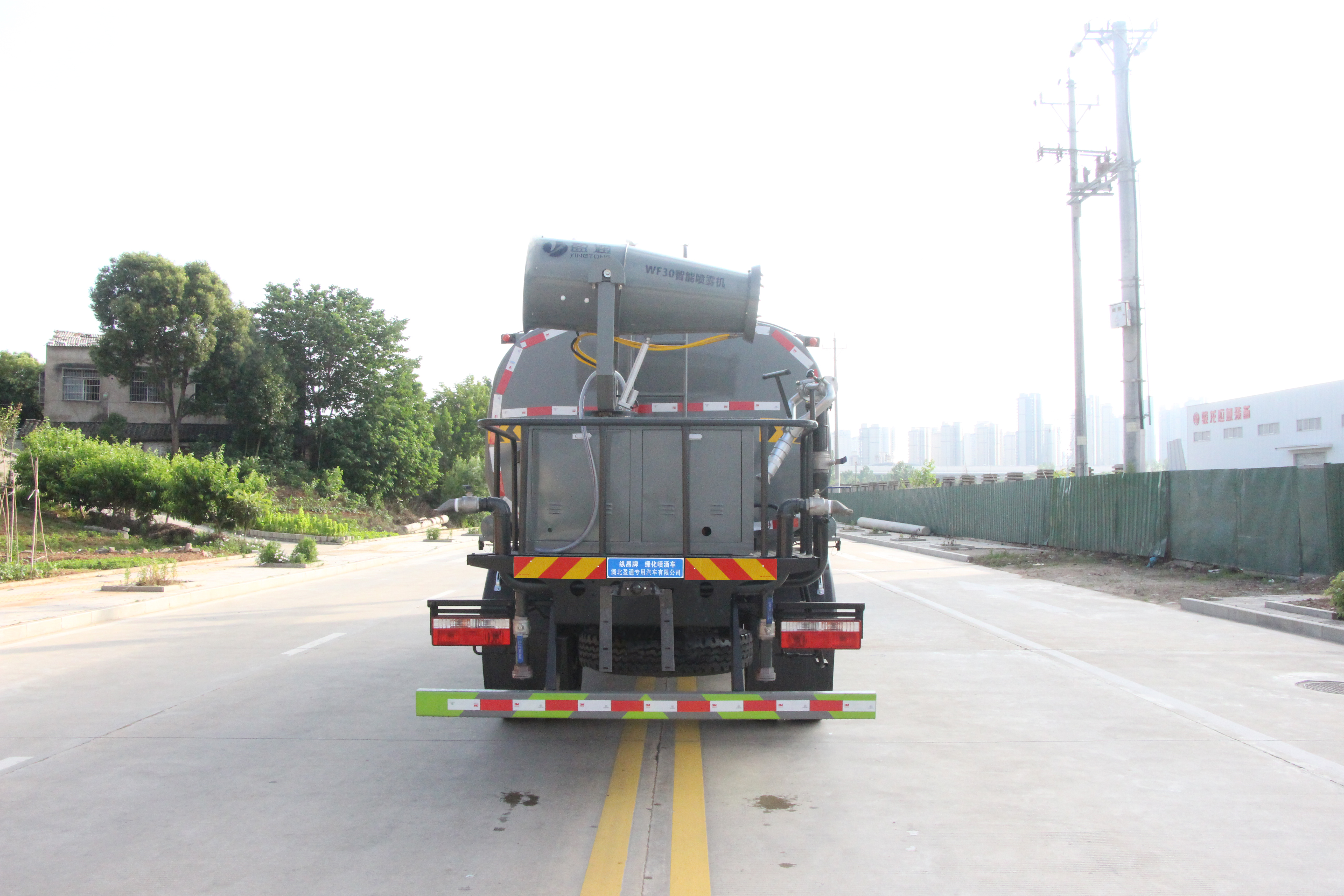 選裝噴霧裝置樣式;ABS型號(hào):ABS/ASR-24V-4S/4M;ABS生產(chǎn)企業(yè):襄陽東風(fēng)隆誠機(jī)械有限責(zé)任公司;隨底盤選裝駕駛室;側(cè)、后防護(hù)材料均為:Q235碳鋼,連接方式均為:螺栓連接,后部防護(hù)截面尺寸(mm):120×50,后部防護(hù)離地高度(mm):440;罐體總?cè)萘?/span>:8.47立方米;罐體有效容積:8.07立方米;罐體外形尺寸(長×長軸×短軸)(mm):4000×2050×1450;該車主要用于城鄉(xiāng)園林綠化噴灑,噴藥;主要裝置為水罐及噴灑裝置;隨底盤選裝油箱左右位置.選裝自動(dòng)球閥安裝位置,選裝后部噴灑裝置樣式.選裝前部電子炮樣式,前伸500mm時(shí),整車長度為7750mm,7950mm.選裝罐體頂部方形罐口樣式及罐口位置,選裝工具箱,選裝箭頭燈裝置,選裝高位花灑裝置,選裝車輛前部鴨嘴裝置.后部作業(yè)燈僅在作業(yè)時(shí)開啟,車輛行駛過程中不可開啟. |